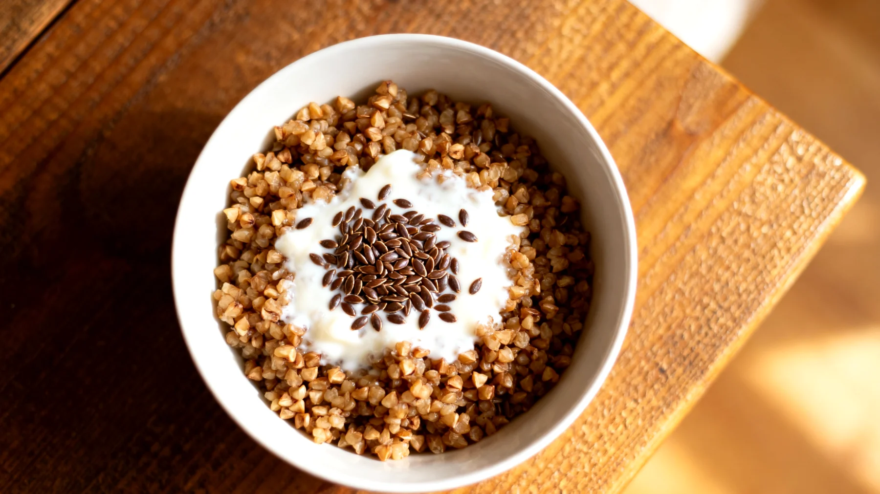 Die Zubereitung ist denkbar einfach: Kasha entweder kurz aufkochen und ausquellen lassen oder direkt mit reichlich Kefir übergießen und 15 Minuten ziehen lassen. Letztere Variante eignet sich besonders für die schnelle Vorbereitung und erhält mehr Nährstoffe. Ein Esslöffel geschrotete Leinsamen unterrühren – fertig.