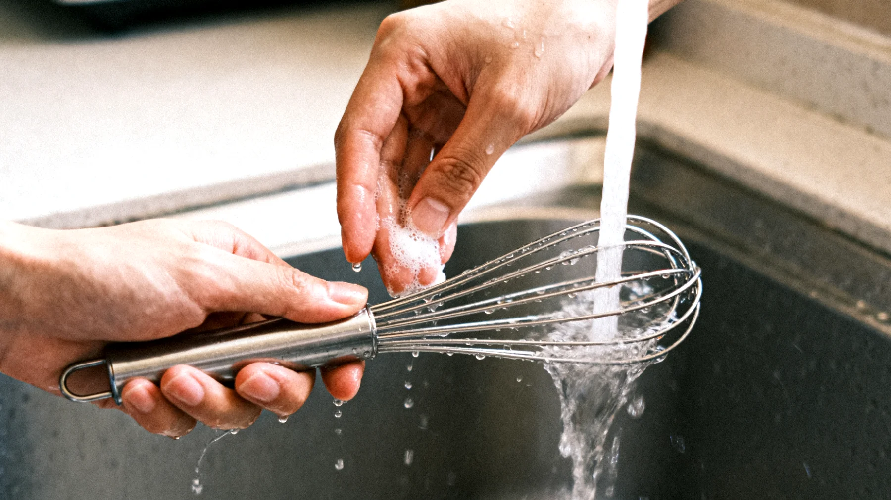 Praktische Reinigungsschritte für Schneebesen aus Metall oder Silikon