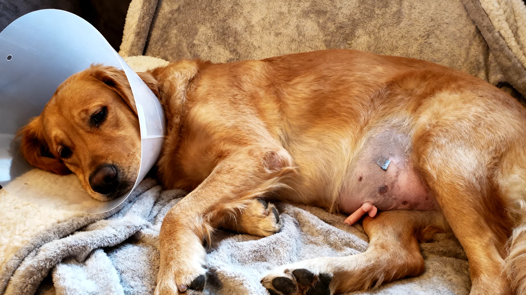 Nach etwa zehn Tagen können die Hautfäden gezogen werden, während innere Fäden selbstauflösend sind. Die meisten Hunde können ab dem vierzehnten Tag wieder vollständig aktiv sein, doch sollte die Belastung schrittweise gesteigert werden.